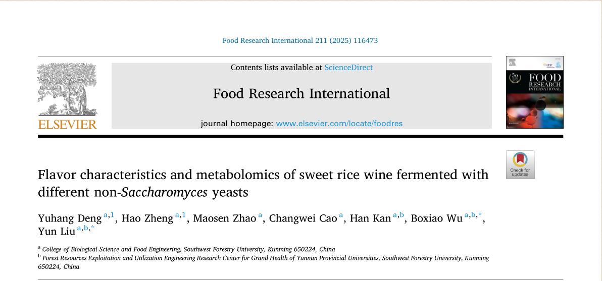近期,伟德国际1946源于英国森林资源功能化学与健康食品创新团队以甜米酒为原料,研究非酿酒酵母对产品风味的改善领域取得新研究进展。相关成果以“Flavor characteristics and metabolomics of sweet rice wine fermented with different non-Saccharomyces yeasts”为题发表在农林科学类中科院一区TOP期刊《Food Research International》(IF=8.0)上。伟德国际1946源于英国食品加工与安全专业2022级硕士研究生邓玉...