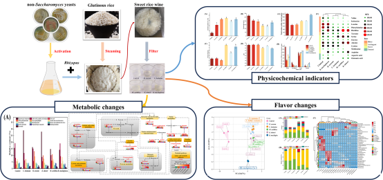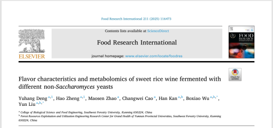 近期,伟德国际1946源于英国森林资源功能化学与健康食品创新团队以甜米酒为原料,研究非酿酒酵母对产品风味的改善领域取得新研究进展。相关成果以“Flavor characteristics and metabolomics of sweet rice wine fermented with different non-Saccharomyces yeasts”为题发表在农林科学类中科院一区TOP期刊《Food Research International》(IF=8.0)上。伟德国际1946源于英国食品加工与安全专业2022级硕士研究生邓玉航为论文第一作者,刘云教授为通讯作者。